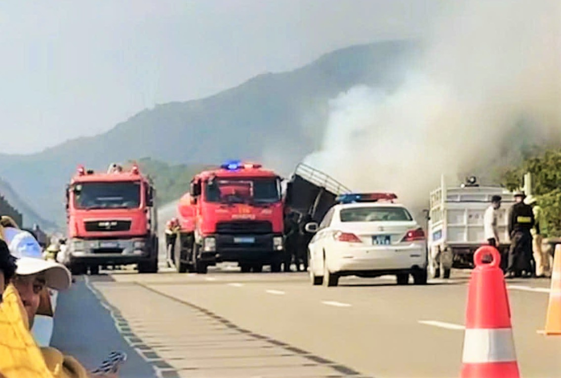 Nhận tin báo, lực lượng Cảnh sát Phòng cháy chữa cháy -Cứu nạn cứu hộ phối hợp với Cục Cảnh sát Giao thông nhanh chóng có mặt tại hiện trường, tổ chức dập lửa, phân luồng giao thông, bảo đảm an toàn cho các phương tiện lưu thông trên tuyến.