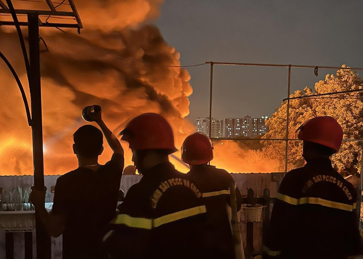 Thông tin ban đầu, khoảng 18h cùng ngày, người dân phát hiện ngọn lửa lớn bốc lên từ một nhà xưởng nằm trong khu dân cư ở phường Thuận Giao, TP Thuận An. Chỉ ít phút, khói lửa đã bốc lên cuồn cuộn, bao trùm cả khu vực nhà xưởng, cột khói đen cao hàng chục mét.