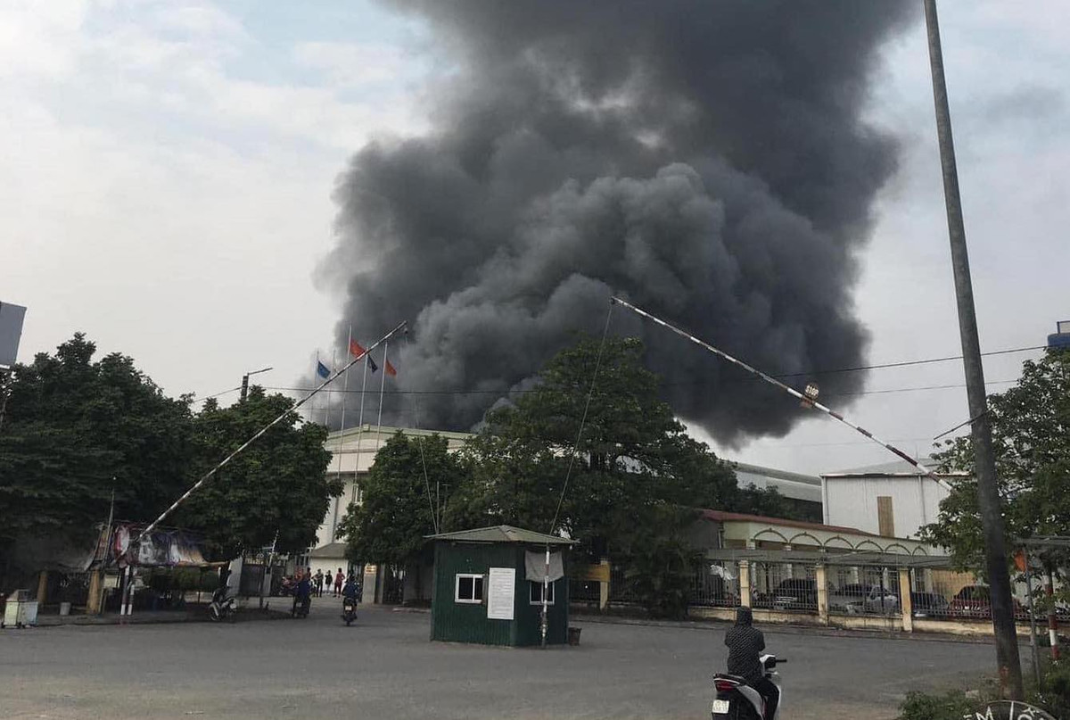 Khói đen bốc lên ngùn ngụt ở hiện trường vụ cháy.