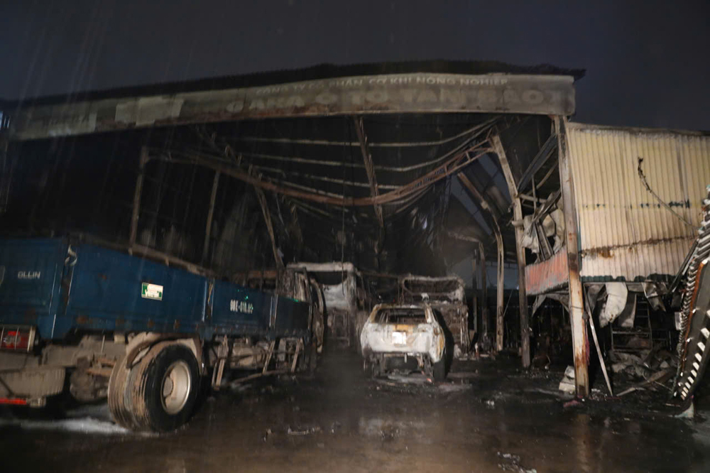 Vụ cháy khiến 6 ô tô (gồm xe con, xe tải và xe khách) đang sửa chữa tại gara bị thiêu rụi hoàn toàn, khoảng 300m² nhà xưởng bị hư hỏng nặng.