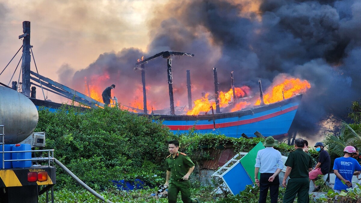 Vụ hoả hoạn xảy ra khoảng 15h ngày 7/12, tại khu vực sửa chữa tàu thuyền ven sông phường Phú Hài, TP Phan Thiết, Bình Thuận. Ngọn lửa xuất phát từ một chiếc tàu, sau đó cháy lan ra nhiều tàu khác.
