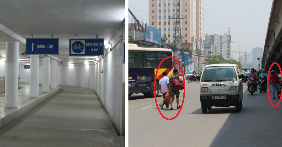 Hai cô gái trẻ thay vì đi trong hầm đi bộ lại chọn cách đi giữa lòng đường. Khi được hỏi về nguyên nhân tại sao không đi trong hầm đi bộ hai cô gái này cho biết, đi như vậy rất mất thời gian nên không muốn đi.