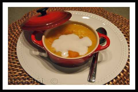Bước 5: Múc chè ra bát đợi nguội và thưởng thức vị ngọt mát, bùi bùi của chè bí đỏ hạt sen.