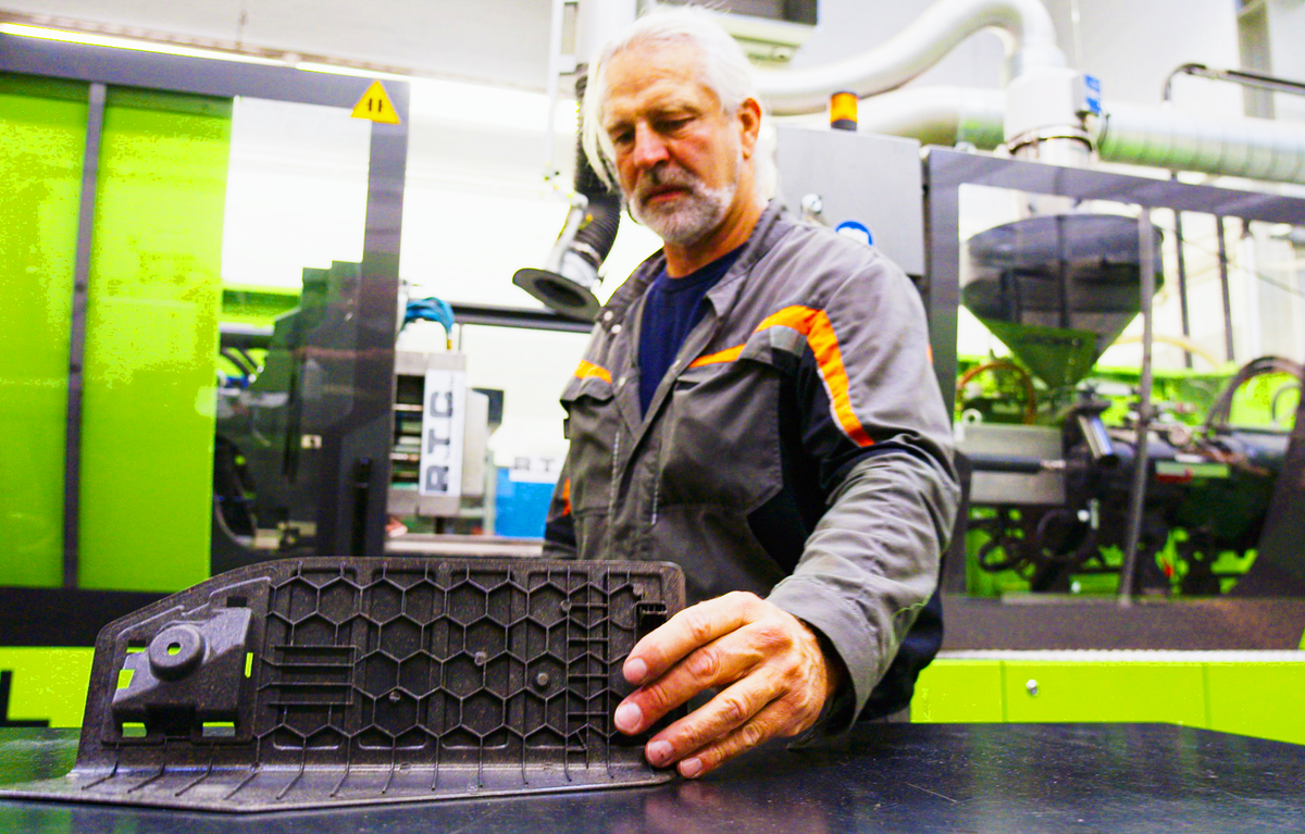 Họ lấy chất thải từ cây ô liu ở Andalusia, Tây Ban Nha (vốn là khu vực có sản lượng dầu ô liu cao nhất thế giới), và kết hợp nó với nhựa tái chế theo tỷ lệ bao gồm 40% sợi cây ô liu và 60% nhựa polypropylen tái chế. Hỗn hợp các chất này được nung nóng và ép phun thành hình dạng của bộ phận chỗ để chân và bộ phận ở khu vực cốp xe dành cho ô tô.