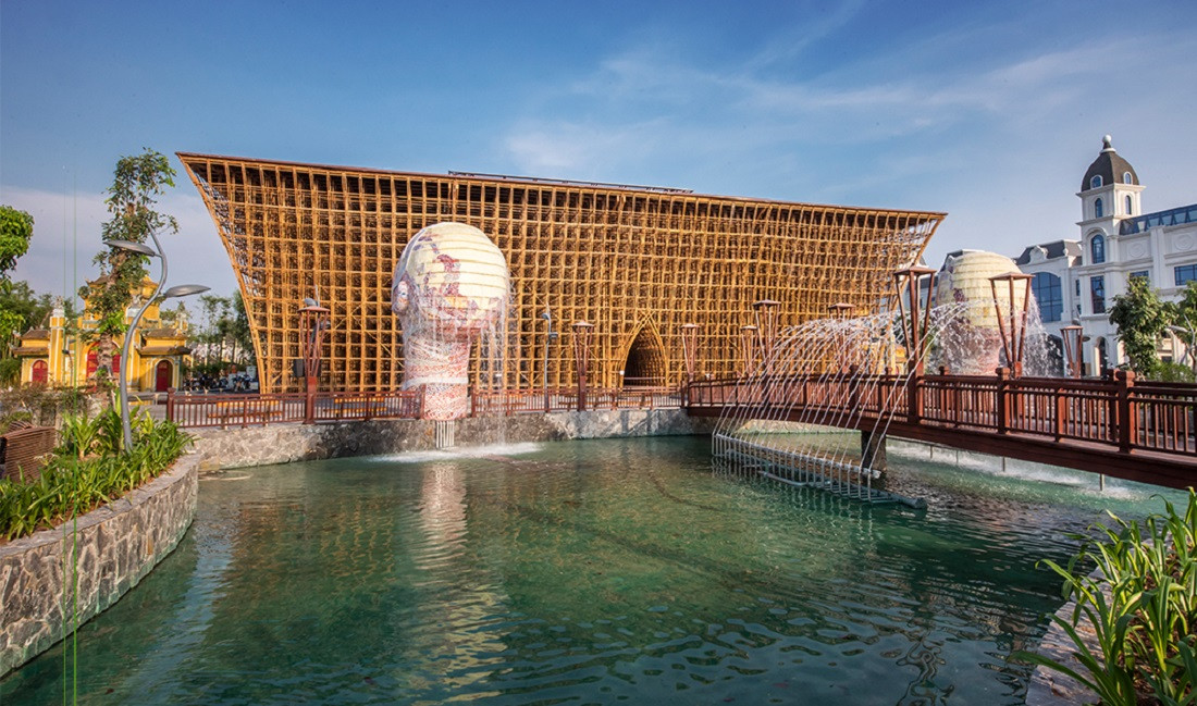 Kiến trúc sư Võ Trọng Nghĩa đã kỹ càng chọn lựa 42.000 cây tre tầm vông từ Tây Ninh để thực hiện công trình có kết cấu phức tạp bậc nhất thế giới này. Những cây tre được chọn lựa đều đảm bảo tính thẩm mỹ và bền vững, các lớp tre đan cài hài hòa tạo nên nhiều hình khối hấp dẫn.