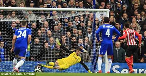 Southampton đã ghi bàn từ một tình huống kết hợp cả hai “bài tủ” của họ trong trận đấu này. Sadio Mane đập nhả với Bertrand rồi lao như mũi tên vào vòng cấm buộc Matic phải phạm lỗi và biếu cho họ một quả penalty.