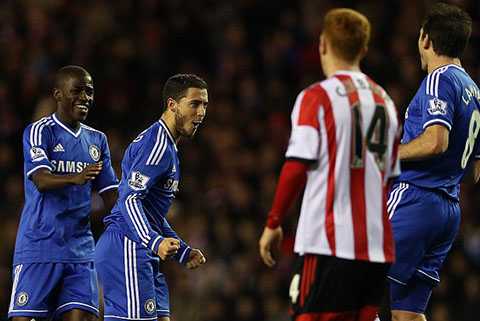 Khác biệt về đẳng cấp nhanh chóng phơi bày trong những phút tiếp theo. Hazard đưa Chelsea vượt lên ở phút 36, rồi Sunderland tiếp tục gỡ hòa, đội bóng thành London lập tức ghi 2 bàn để tạo khoảng cách an toàn với đối thủ.