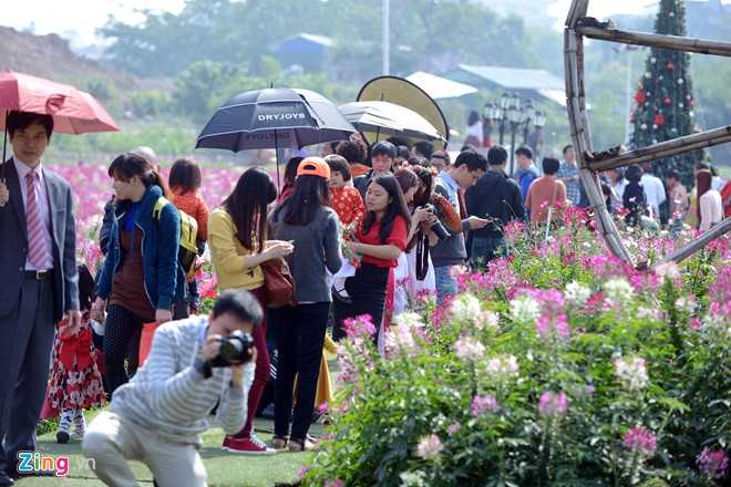 Chủ vườn bố trí các lối đi lại theo hình vuông để mọi người tiện chụp ảnh. Ngay cả lối xa nhất gần khu vực hàng rào cũng rất đông người.