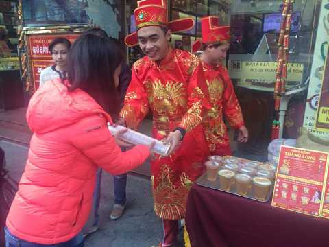 | Các cửa hàng vàng đều chuẩn bị quà tặng, nước uống cho khách khá chu đáo khi đến mua vàng vào những ngày này. |
