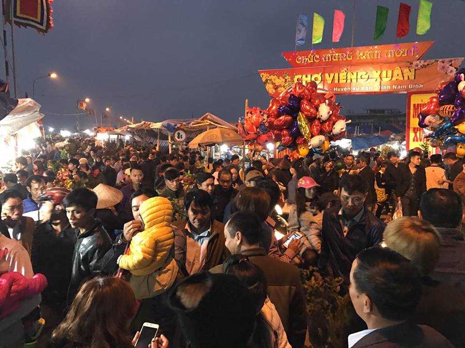 Ngay từ chiều, đường đến chợ Viềng đã tắc nghẽn. Đến tối, tại đây đông kín người.