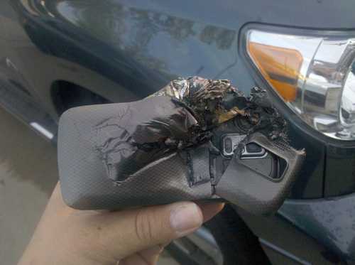 Khi lên ô tô, chiếc xe bị rơi xuống sàn, anh cố gắng với tay để lấy nhưng bất thành. Nhưng khi vừa nhìn xuống sàn xe thì bắt đầu nghe tiếng ọp ẹp phát ra từ chiếc điện thoại. Nhìn kỹ hơn dưới chỗ ngồi thì điều xấu nhất đã tới, chiếc điện thoại phát nổ trước mặt anh.