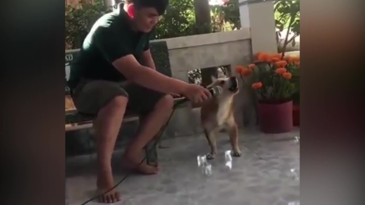 Chết cười xem chú chó trổ tài hát karaoke