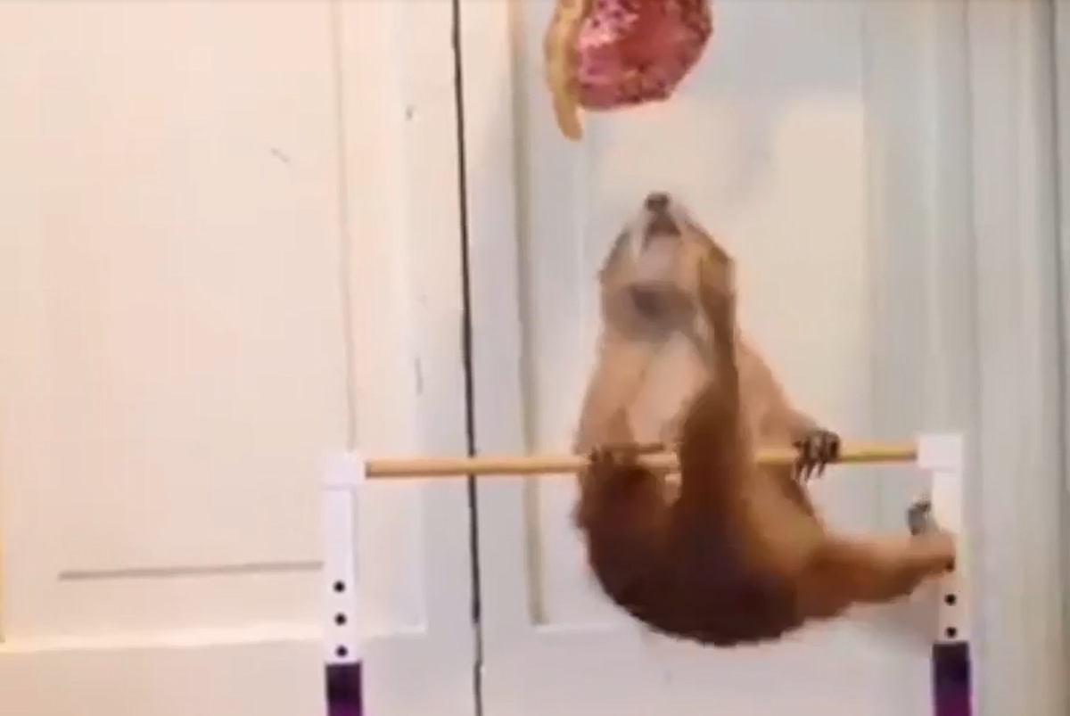 Miếng bánh treo trên cao là động lực để chú chuột cật lực thập thể dục, trông thật vất vả.