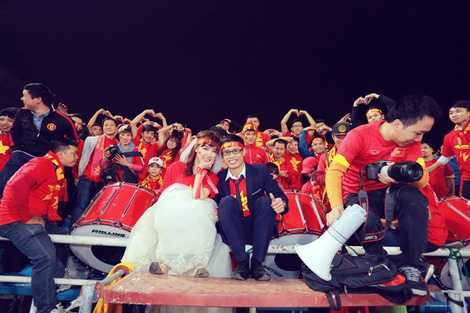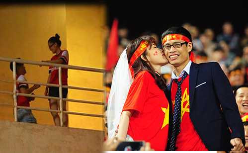 Cũng trên khán đài sân Mỹ Đình, sau hiệp một trận đấu giữa ĐT Việt Nam với Đài Loan (Trung Quốc) tối 24/3/2016, một chàng trai đã đứng lên nói lời cầu hôn bạn gái mình trước sự chứng kiến của hàng vạn khán giả trên sân.
