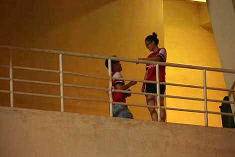 | Cặp đôi fan Arsenal cầu hôn trên khán đài sân Mỹ Đình |