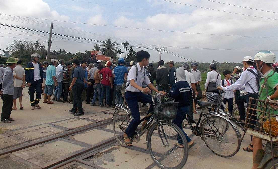 Vụ tai nạn khiến chuyến tàu trên phải dừng lại khoảng 30 phút. Nhiều người dân hiếu kỳ tập trung theo dõi khiến giao thông qua đây bị ách tắc.