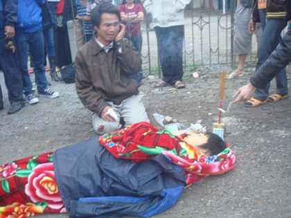 | Người cha vật vã bên xác con |