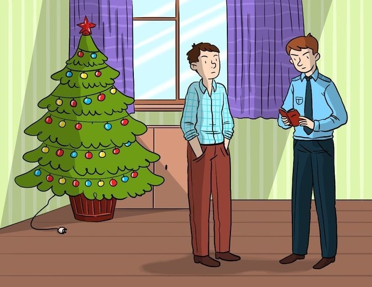 Chủ nhà than phiền họ bận đến mức không có thời gian để trang trí cây thông Noel. Sau một hồi suy nghĩ, vị thám tử nói với chủ nhà rằng: "Đừng lo lắng, tôi đã biết người hàng xóm của anh là kẻ nói dối".
