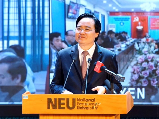 Bộ trưởng Bộ GD&ĐT Phùng Xuân Nhạ phát biểu tại hội nghị.