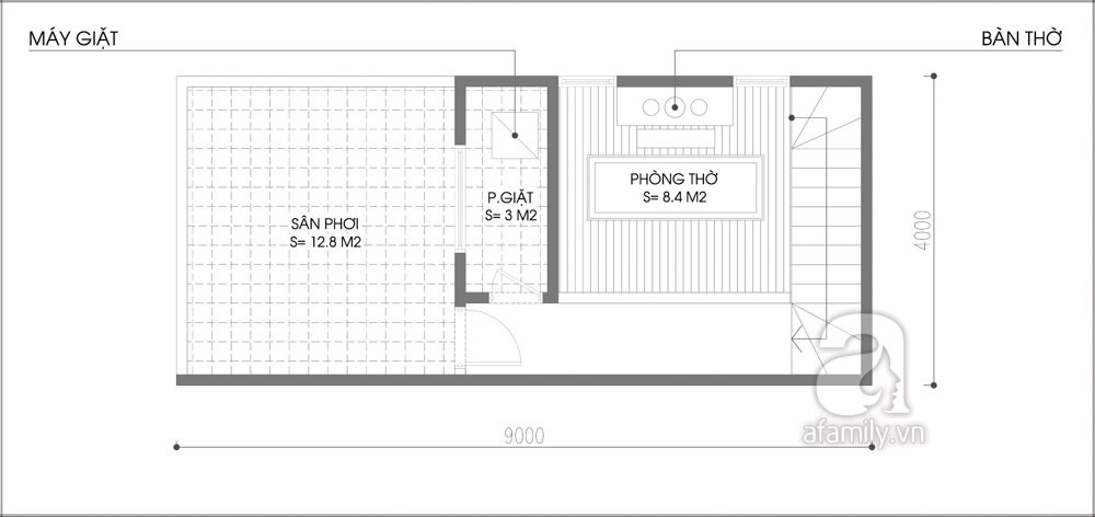 Ngoài ra, trên tầng tum, chúng tôi sẽ bố trí thêm phòng thờ và phòng giặt giũ kết hợp sân phơi đồ rộng rãi.