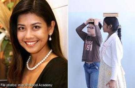 Đây là tiết lộ của giám đốc học viện Protocol, bà Teo Ser Lee. Ngoài việc tổ chức các lớp học nghi thức dành cho người lớn, học viện cũng mở lớp dành cho các bé từ 5 tuổi trở lên. Tuy nhiên một số phụ huynh vẫn yêu cầu được đăng ký cho con đến học dù các bé chỉ mới 4 tuổi.