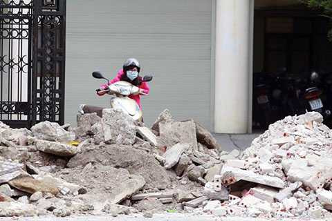 Theo một lãnh đạo Chi cục, cứ đêm đêm, một số xe tải lại chở đống đất đá phế liệu được phá dỡ từ những khu nhà gần đó đổ vây quanh trụ sở Chi cục.