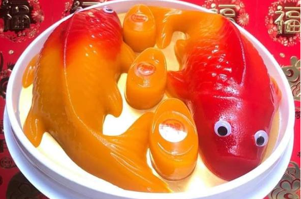 Những con cá chép giả được làm nguyên liệu từ gạo nếp, đúc khuôn khá công phu với màu sắc đẹp, trang trí cầu kỳ bắt mắt. Chè cá chép là nhân đậu xanh, còn xôi cá chép làm nhân nấm thịt. Sau khi cúng, người mua có thể thưởng thức được luôn.