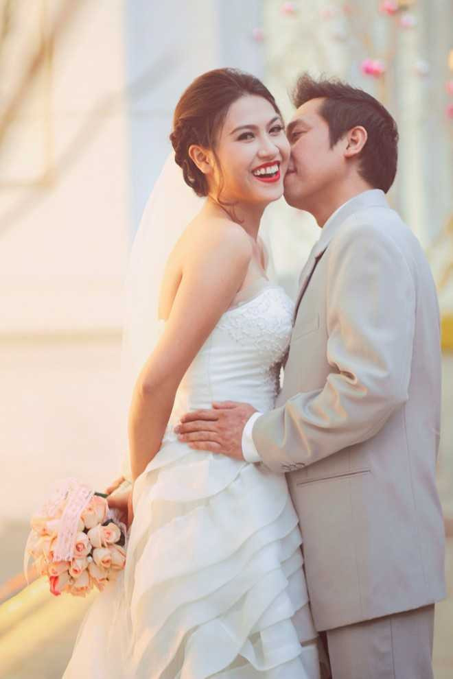 | Bộ ảnh cưới của Hoàng Yến và chồng được thực hiện tại những dịa điểm quen thuộc tại TP.HCM. Cô dâu diện váy cưới gam màu trắng trong trẻo, là gam màu mà Hoàng Yến yêu thích. Đây cũng là tông màu chủ đạo cho toàn bộ album cưới. |
