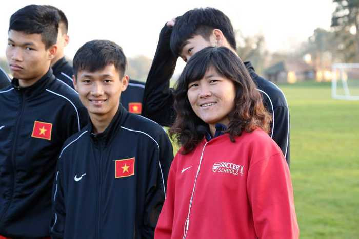 Ngay trong buổi tập đầu tiên của U19 Việt Nam tại Trung tâm huấn luyện quốc gia Lilleshall (Anh), trong những hình ảnh được gửi về nước có sự xuất hiện của một người phụ nữ tham gia tập khởi động cùng U19 Việt Nam.
