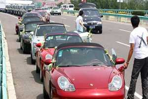 Ngày 8/7 Tân Hoa Xã đăng tải chùm ảnh lễ đính hôn xa hoa của con trai một chủ doanh nghiệp thành đạt ở Bắc Kinh. Cô dâu là một MC dẫn chương trình game show cho đài truyền hình Tế Nam. 44 siêu xe do chiếc Ferrrari màu đỏ son dẫn đầu, xe nào xe nấy kết hoa rực rỡ đi thành hàng tiến về phía khách sạn.