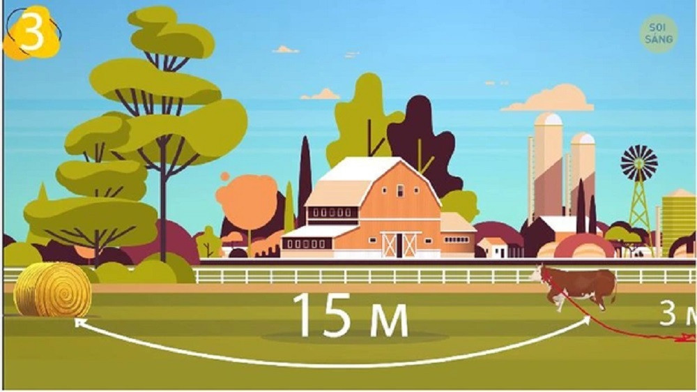 Một con bò bị buộc bằng sợi dây dài 3 mét và cách nó 15 mét có một bó cỏ khô. Thế nhưng con bò vẫn có thể dễ dàng ăn cỏ được. Vì sao nhỉ?