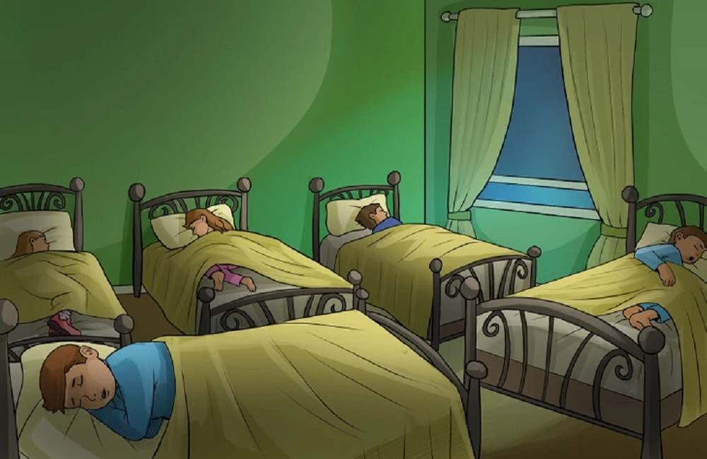 Trong 5 đứa trẻ đang ngủ trên giường, có một bé đã lẻn ra ngoài, sau đó quay lại giường ngủ. Theo bạn đó là ai?