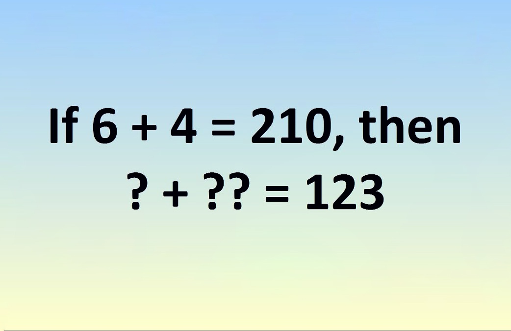 Đề bài như sau: Nếu 6 + 4 = 210, vậy 123 sẽ là tổng của 2 con số nào?