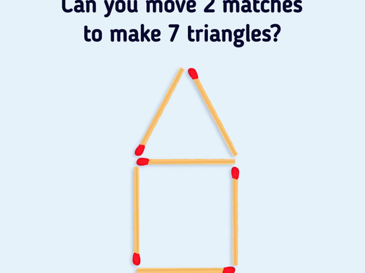 Bạn có thể di chuyển vị trí 2 que diêm để tạo ra 7 hình tam giác không?