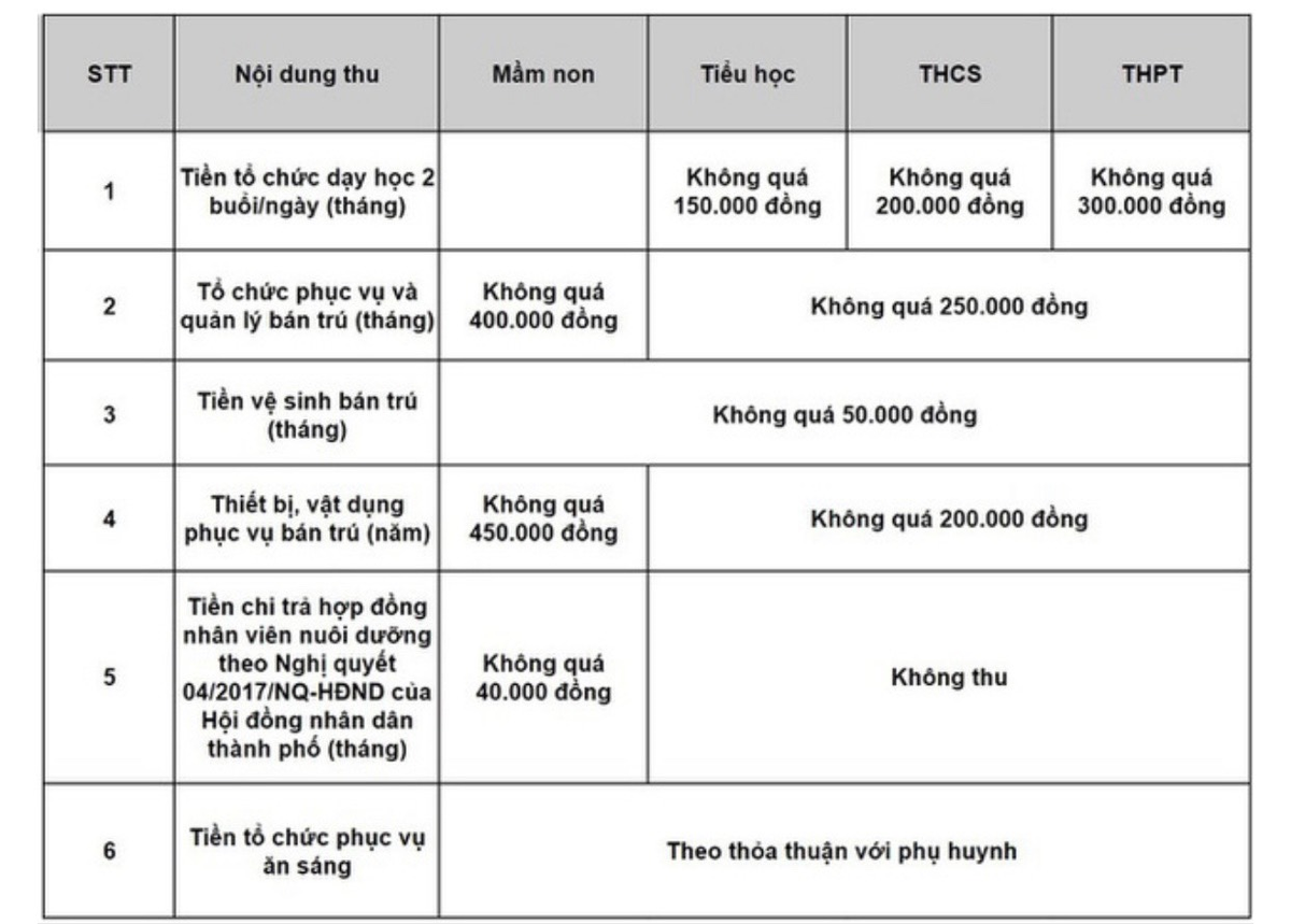 Đối với 3 trường THPT thuộc Đề án trường tiên tiến theo xu thế hội nhập khu vực và quốc tế là Lê Quý Đôn, Nguyễn Hiền, Nguyễn Du, Sở đưa ra khung mức thu cho các trường này là 1,5 triệu đồng/học sinh/tháng.