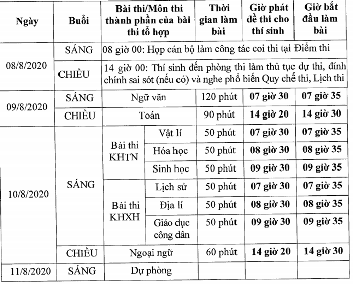 Bộ GD&ĐT vừa ra công văn thông báo về thời gian tổ chức kỳ thi tốt nghiệp THPT năm 2020 là từ 8/8 đến 11/8. Thí sinh dự thi trong 2 ngày là 9/8 và 10/8 với 4 buổi thi chính thức.