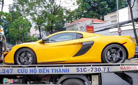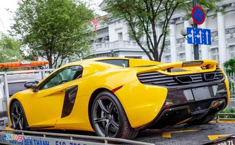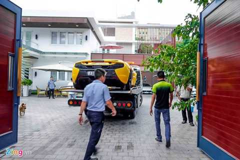 | Chiều 19/5, siêu xe này được vận chuyển từ cảng về nhà riêng của thiếu gia này trên đường Điện Biên Phủ, TP HCM. Theo giới kinh doanh xe nhập, giá trị một chiếc McLaren 650S Spider khi nộp đủ thuế tại Việt Nam khoảng 800.000 USD (trên 16 tỷ đồng), đắt hơn Lamborghini Huracan nhưng rẻ hơn Ferrari F12. |