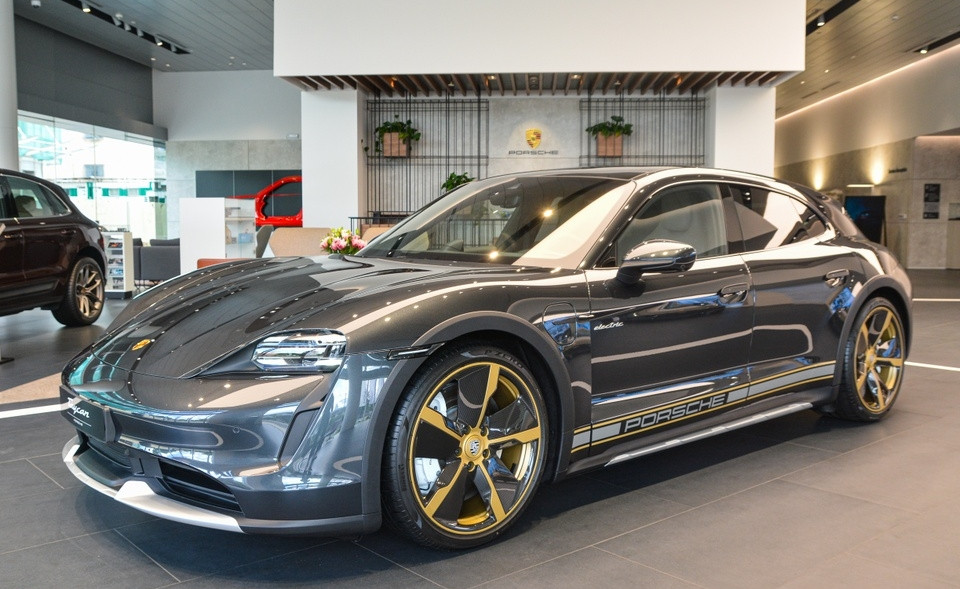 Ngoài biến thể sedan quen thuộc, mẫu xe thể thao điện Porsche Taycan còn có biến thể Cross Turismo với thiết kế phần đuôi mở rộng, giúp tăng thêm tính thực dụng. Chiếc xe trong bài thuộc phiên bản Turbo có giá bán tiêu chuẩn 6,77 tỷ đồng, xe cũng đã có những nâng cấp riêng với chi phí hơn 1,7 tỷ đồng.