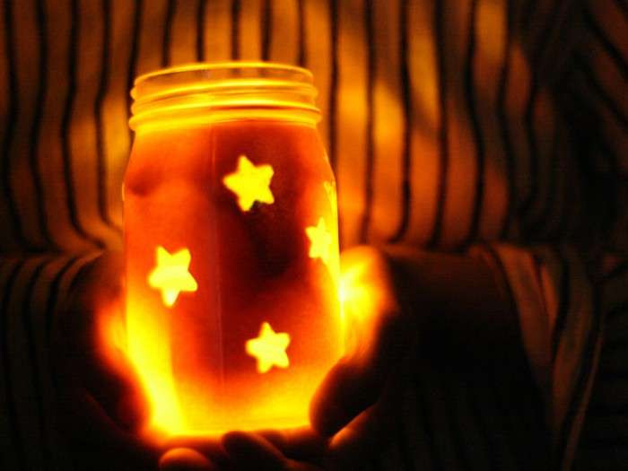 Bước 5: Đặt nến vào bên trong lọ thủy tinh. Vậy là chiếc đèn trung thu độc đáo đã ra đời rồi.