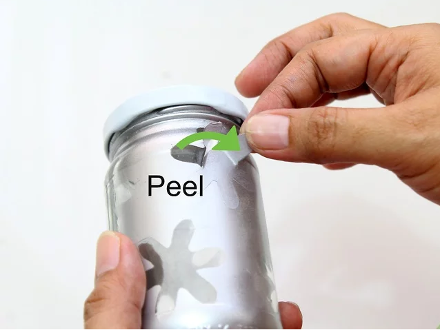 Bước 3: Lần lượt tháo những miếng dán trên chiếc lọ đi