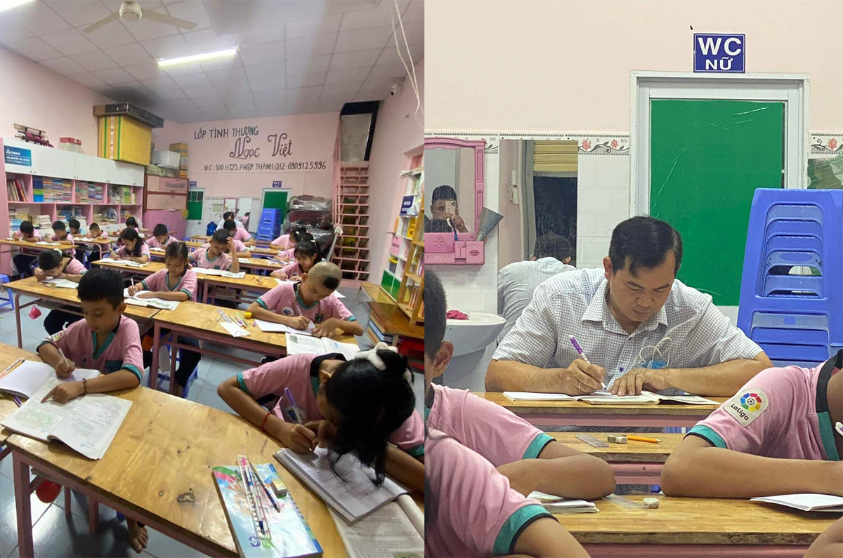 Đó là những dòng chia sẻ xung quanh bức ảnh người đàn ông đang miệt mài bên con chữ. Được biết, đây là lớp học tình thương tại TP. Hồ Chí Minh để dạy cho những trẻ có hoàn cảnh đặc biệt.