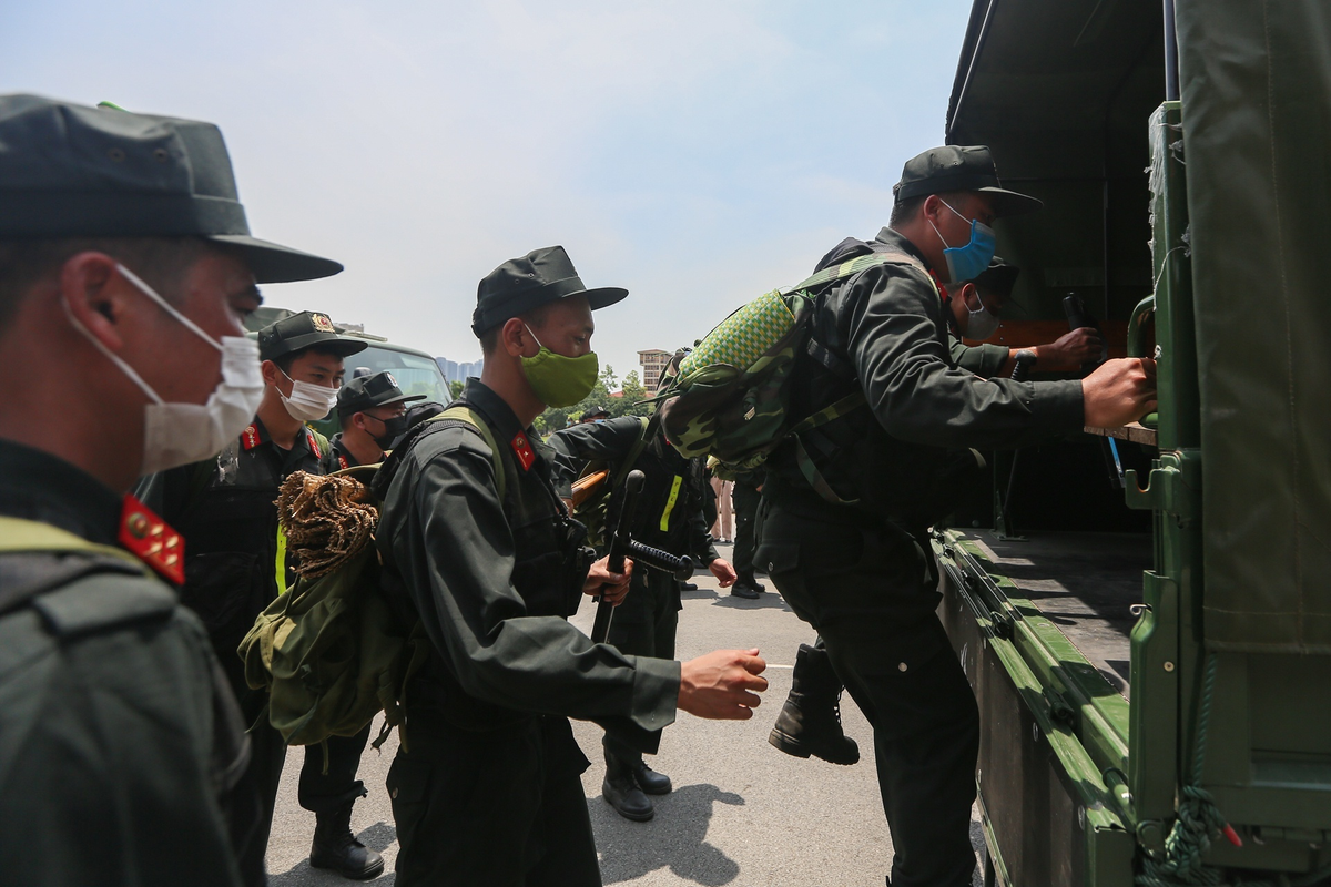 Ngày 20/5, Bộ Tư lệnh Cảnh sát cơ động (Bộ Công an) đã tổ chức lễ ra quân cho hơn 200 cán bộ, chiến sĩ cảnh sát lên đường đến Bắc Giang để hỗ trợ tỉnh phòng, chống dịch Covid-19 và đảm bảo an ninh, an toàn cuộc bầu cử đại biểu Quốc hội khoá XV và đại biểu HĐND các cấp nhiệm kỳ 2021-2026 ngày 23/5. (Ảnh: Đức Anh).