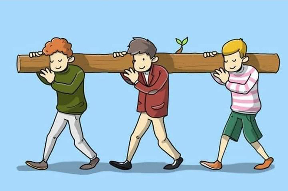 Trong ba người đàn ông này ai là người đang vác phần nặng nhất?