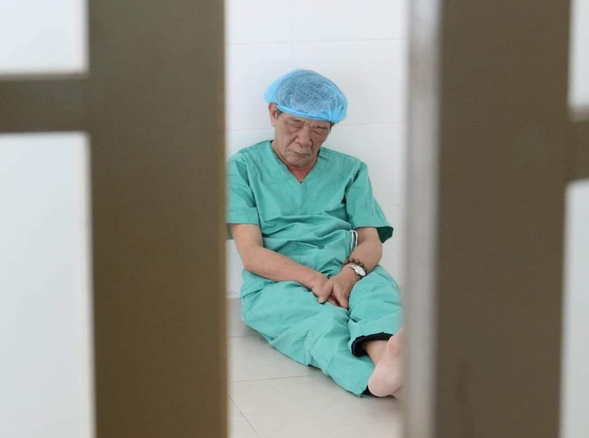 “Vào buổi trưa, vì mổ mệt quá, tôi có ra hành lang chợp mắt ngủ một chút”, bác sỹ Trường nói và cho biết ông không ngờ các đồng nghiệp mang máy ra chụp trộm rồi đăng tải lên mạng xã hội.