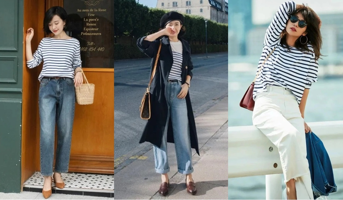 Bạn có thể kết hợp áo thun kẻ với nhiều kiểu trang phục.