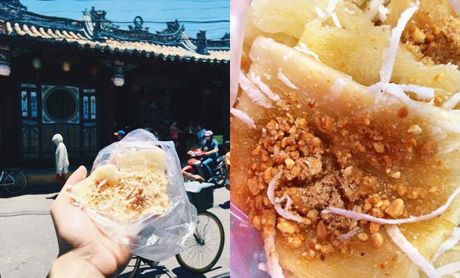 Những miếng bánh sắn sau khi hấp ửng lên màu vàng nhạt kèm theo mùi thơm dìu dịu đầy thách thức. Quệt chút dầu hành phi bóng mượt rồi điểm thêm dừa sợi, đậu phộng rang và đường cát phía trên, chỉ bấy nhiêu thôi mà gói gọn bao nhiêu hương vị tinh tế của Phố Hội.