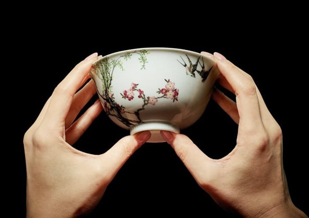 Chiếc bát được sản xuất trong thời kỳ trị vì của Hoàng đế Ung Chính từ năm 1722 đến 1735. Họa tiết trên chiếc bát giống như bức tranh cuộn của Trung Quốc, với hình ảnh đôi én bay, hoa hạnh nở rộ, và cây liễu báo hiệu mùa xuân.