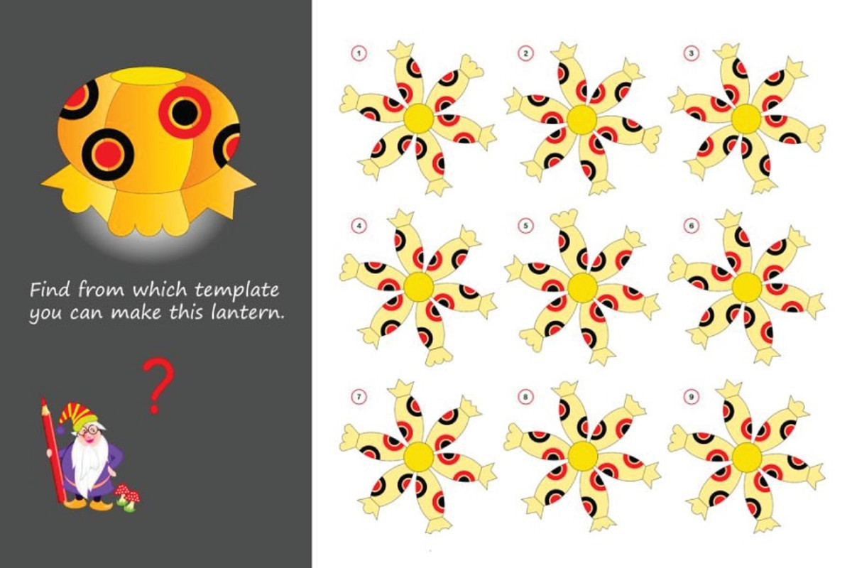 Chiếc đèn lồng bên trái được tạo nên từ mẫu nào trong 9 thiết kế ở bên phải hình dưới?