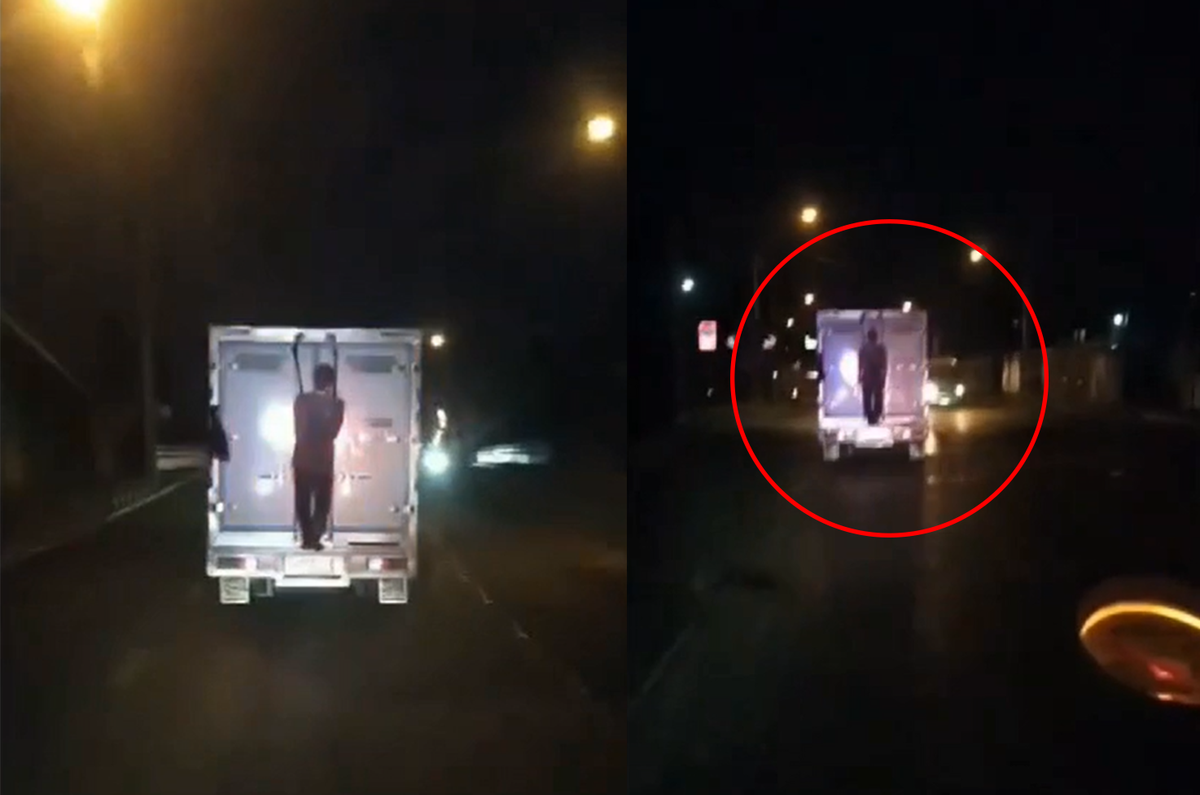 Khi đạp ga để nhìn gần hơn thì người tài xế này phát hiện hóa ra bóng đen ấy là một người đàn ông. Theo đó, người này đã dùng dây buộc mình dính với thùng hàng phía sau xe trong khi không có bất cứ thứ gì để bám vào.
