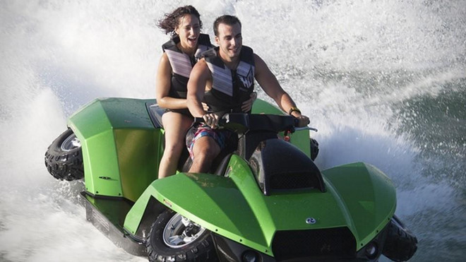 Chiếc Gibbs Quadski là mẫu xe kết hợp giữa mô tô nước và xe vượt địa hình, xe có thể đạt tốc độ 72 km/h và chỉ tốn 5 giây để chuyển tiếp giữa 2 địa hình.